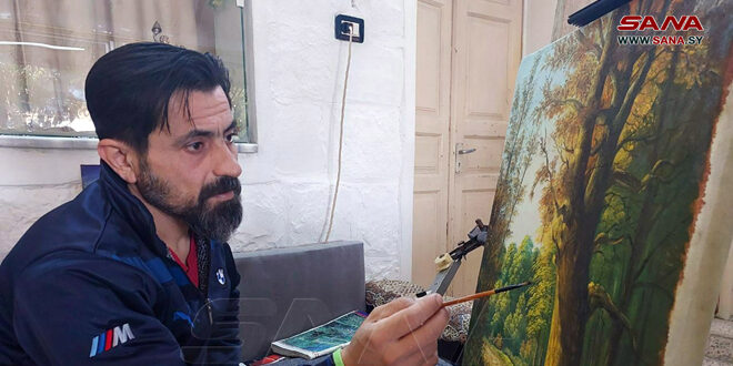 وأضاف: إنه انقطع عن الرسم لأربع سنوات متواصلة نتيجة ظروف مر بها إلا أن سعيه المتواصل للرسم مكنه من العودة مجدداً والتعمق بمدلولات الصورة ورمزية الألوان بها ليجسدها على قماش الكانفاس بأحجام مختلفة، مستخدماً الألوان الزيتية التي تمتزج مع بعضها البعض بشكل جيد وتساعد في الحفاظ على رونق الصورة مع مرور الوقت، مشيراً إلى أنه لا يميل إلى رسم الوجوه الصامتة كونه لا يرى بها حياة، ولا إلى استخدام الرصاص والفحم بل يفضل المناظر الطبيعية التي تمتاز بالتجدد والتغيير وقدرتها على ترك انطباع إيجابي للناظر إليها ليجد بها الطمأنينة بعيداً عن صخب المدينة والتلوث البصري.