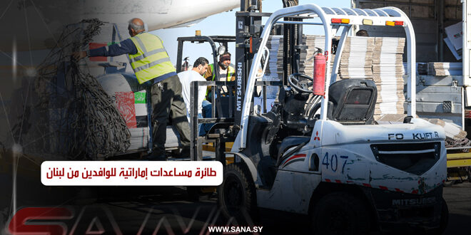 وصول طائرة مساعدات إماراتية للوافدين من لبنان إلى مطار دمشق الدولي