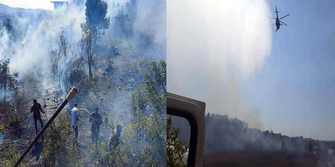 تتواصل جهود فرق الإطفاء والمجتمع المحلي في محافظة اللاذقية بمشاركة الطيران المروحي للجيش العربي السوري في إخماد الحرائق التي اندلعت بالعديد من الأحراج والمناطق في ريف المحافظة وسط صعوبات كبيرة في عمليات الإخماد نظراً لوعورة المناطق والظروف المناخية التي ساعدت على امتداد نطاق الحرائق.
