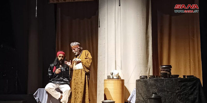 العرض الذي يأتي بالتعاون بين مديرية المسارح والموسيقا والمسرح القومي باللاذقية، يتناول مرحلة تاريخية شهدت أحداثاً معقدة، تم العمل على تقديمها بشكل “فانتازي” يحاكي أحداث واقعنا العربي الحالي وتجلياته.