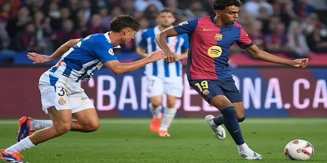 فاز فريق برشلونة على ضيفه إسبانيول بثلاثة أهداف مقابل هدف واحد ليبتعد بصدارة دوري الدرجة الأولى الإسباني لكرة القدم.