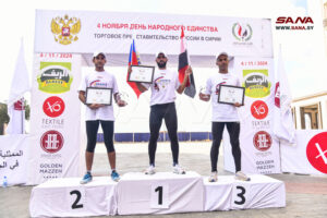 وأقيم الماراثون لمسافة 10 كيلومترات بمشاركة متسابقين من مختلف الفئات العمرية من روسيا وسورية وسط أجواء حماسية عالية انتهت بتتويج الفائزين.