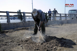 وأشار كل من رئيس القطاع الرابع في مدينة دمشق بسام إسماعيل إلى أن الأعمال تضمنت تنظيف المكان وترحيل الأنقاض وزراعة 200 شجيرة من “زنزلخت وخرنوب وصنوبر”.