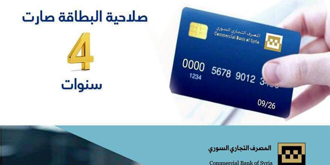 أعلن التجاري السوري رفع صلاحية البطاقات المصرفية الصادرة عنه إلى 4 سنوات بدلاً من 3 سنوات.