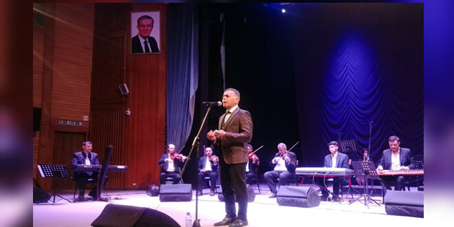 أطرب الفنان موفق الشمالي اليوم جمهور مسرح دار الثقافة خلال الأمسية التي نظمتها مديرية المسارح والموسيقا-المسرح القومي بحمص ورافقته فيها الفرقة الموسيقية بقيادة فايز الشامي.