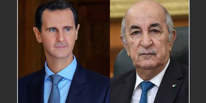وأعرب الرئيس الأسد عن تقديره العالي لما تتميز به العلاقات الأخوية الراسخة التي تجمع سورية والجزائر، وحرصه البالغ على أن تشهد مسارات العمل الثنائي والتنسيق المشترك تطوراً وتقدماً مستمرين لما فيه مصلحة البلدين والمنطقة العربية.