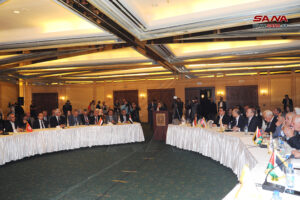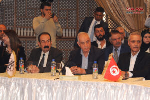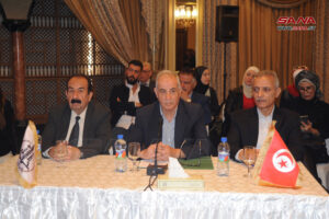 القائم بأعمال السفارة العراقية بدمشق ياسين شريف الحجيمي لفت إلى ضرورة الوقوف بوجه الاعتداءات الصهيونية المتكررة على الشعبين الفلسطيني واللبناني، مبيناً أن الاعتداءات طالت المنشآت السكنية والمدنية، وأسفرت عن سقوط مئات الشهداء وآلاف الجرحى، وتهجير آلاف المدنيين، معرباً عن أمله في أن تخرج الورشة بنتائج فاعلة تتضمن صياغات قانونية تفضح هذه الجرائم وتعمل على الحد منها، من خلال تفعيل محكمة العدل الشعبية.