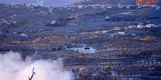 فرق الإطفاء والدفاع المدني بمؤازرة مروحيات الجيش تسيطر على حرائق عدة بريف اللاذقية 1-11-2024
