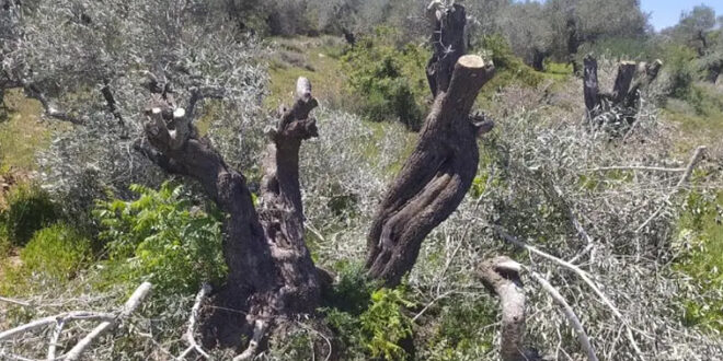 اعتدى مستوطنون إسرائيليون اليوم على أراضي الفلسطينيين الزراعية في بيت لحم بالضفة الغربية وقطعوا عشرات الأشجار.