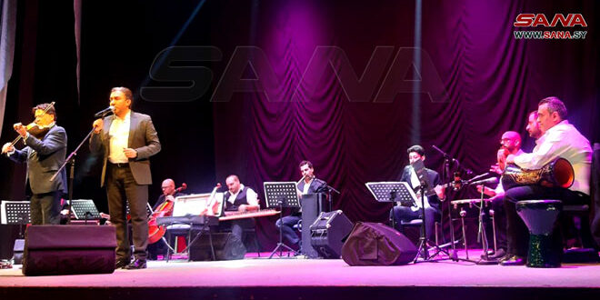 الأمسية التي نظمها المسرح القومي في حمص تضمنت مقطوعات سماعي من مقام الرصد للمؤلف جورج ميشيل ولونغا عجم لجميل عويس ومعزوفة النجوم تأليف وإعداد هادي بقدونس ورقصة الشيطان لمحمد عبد الكريم وفقرتين غنائيتين لعبد الحليم حافظ “فاتت جنبنا” و “موعود” أداهما الفنان خلدون حناوي واختتمت الأمسية بميدلي كلثوميات.