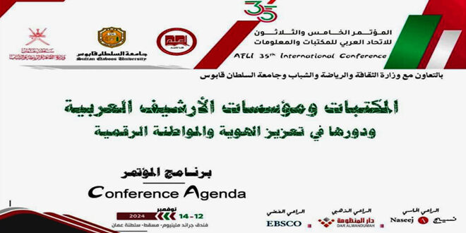 وينظم المؤتمر الاتحاد العربي للمكتبات والمعلومات بالتعاون مع وزارة الثقافة والشباب والرياضة العمانية وجامعة السلطان قابوس، وذلك في فندق جراند ميلينيوم مسقط على مدى ثلاثة أيام، حيث يشارك من سورية مدير عام مكتبة الأسد الوطنية بدمشق فادي غانم وعدد من الباحثين السوريين.