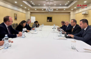 التقى وفد الجمهورية العربية السورية إلى الاجتماع الدولي الثاني والعشرين حول سورية بصيغة أستانا، برئاسة معاون وزير الخارجية والمغتربين أيمن رعد، مع وفد الاتحاد الروسي برئاسة المبعوث الخاص للرئيس الروسي إلى سورية ألكسندر لافرنتييف.