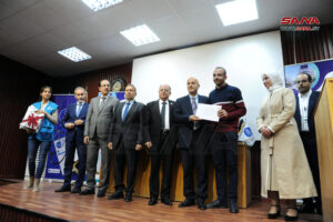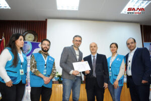 مدير المشافي والمراكز الصحية في وزارة الصحة الدكتور توفيق حسابا أشار إلى ضرورة استمرار عملية التعلم وزيادة المعارف للعاملين في القطاع الطبي، بما ينعكس على مصلحة وجودة الخدمة للمريض في كل المشافي، منوهاً بأهمية تكريم الأطباء المقيمين الذين يحملون العبء وخاصة خارج أوقات الدوام وتحديداً الفترة الليلية.