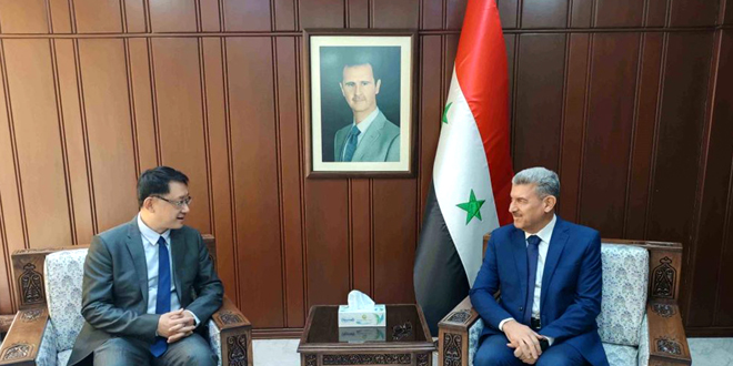 بحث وزير الموارد المائية المهندس معتز قطان مع سفير الصين بدمشق شي هونغوي، سبل تعزيز وتطوير التعاون بين البلدين في قطاع المياه.