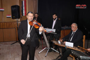 بمناسبة أعياد تشرين أقامت مديرية المسارح والموسيقا بالتعاون مع مديرية الثقافة والمسرح القومي في حماة اليوم، حفلاً فنياً وطنياً بعنوان “جبين الشمس..سورية” على مسرح المركز الثقافي بحماة.