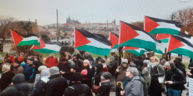 تظاهر الآلاف وسط العاصمة التشيكية براغ دعماً للشعب الفلسطيني وتنديداً بالعدوان الإسرائيلي المستمر على قطاع غزة.
