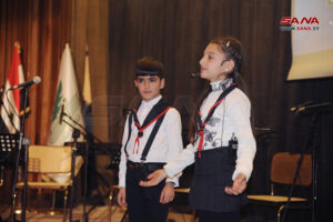 وافتتح الاحتفال بعدد من الأغاني الوطنية والإنسانية والاجتماعية، أداها أطفال موهوبون في العزف والغناء بإشراف الفنان سليمان حرفوش، كما أدار الاحتفال عدد من الأطفال المتفوقين.