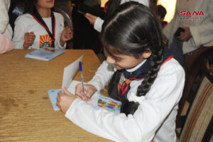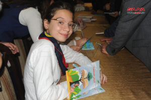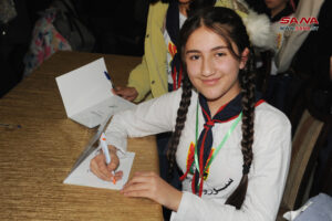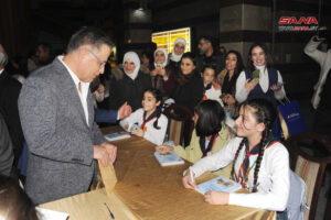 ووقع الأطفال كتبهم في صالة مكتبة الأسد إهداء للحضور الذي شارك به أيضاً عضو القيادة المركزية للحزب سمير خضر، وأمين فرع حزب البعث العرب الاشتراكي بدمشق حسام السمان، ومحافظ ريف دمشق أحمد إبراهيم خليل، ومعاون وزير التربية الدكتور رامي الضلي، وعدد من السفراء والمثقفين وذوي المميزين.