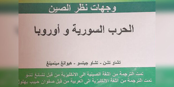 “وجهات نظر الصين – الحرب السورية وأوروبا” كتاب يتناول الحرب على سورية وموقف الدول الأوروبية ونظرة الصين لها للباحثين “تشاوشن وتشاوجيستو.. وهيوانغ مينمينغ ” ترجمه من الصينية إلى الإنكليزية “تشانغ تشو” ومن الإنكليزية إلى العربية “صفوان حبيب بهلول”.