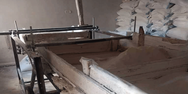 وأضاف سنكري: إنه تم العثور كذلك داخل المستودع على منخل مختلف الأحجام وماكينة درز للأكياس وميزان إلكتروني وأكياس فارغة، مشيراً إلى أنه تم تنظيم ضبط بمخالفة “الإتجار بالدقيق التمويني” وتسليم المصادرات إلى المؤسسة السورية للمخابز بحلب.