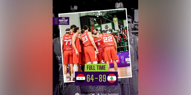 خسر منتخب سورية لكرة السلة أمام نظيره اللبناني بنتيجة 64–89 نقطة في المباراة التي جمعتهما اليوم في دبي في المباراة الثانية من النافذة الثانية من تصفيات كأس آسيا.
