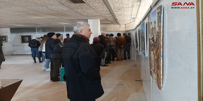 نحو 22 عملاً فنياً تشكيلياً بالألوان الزيتية قدمها الفنانون عامر الخطيب ونضال خويص وثناء النبواني وربيع بلان ضمن معرض “نفحات جنوبية” الذي افتتحته مديرية الثقافة بالسويداء اليوم ضمن احتفالية أيام الثقافة السورية.