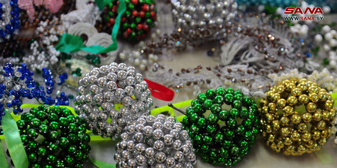 مع اقتراب أعياد الميلاد ورأس السنة تعكف السيدة هديان محمد بطحة على صناعة الكرات الملونة الخاصة بتزيين شجرة الميلاد من الكريستال والخرز العادي.