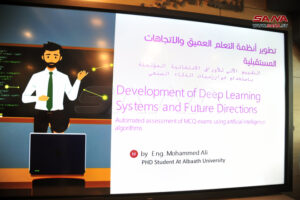 مدير المنصات التربوية والمخابر الافتراضية في الوزارة محمود حامد أشار إلى التحولات الهائلة التي يشهدها التعليم بفضل التطورات المتسارعة في مجال الذكاء الاصطناعي والتي تسعى الوزارة إلى مواكبتها عبر الاستفادة من تقنياته وتطبيقاته للوصول إلى معلم مواكب للتقدم الحاصل على مستوى العالم.