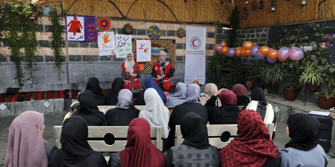 ضمن حملة 16 يوماً لمناهضة العنف القائم على النوع الاجتماعي نظم فرع الهلال الأحمر العربي السوري بدرعا جلسة توعوية وورشة أعمال يدوية لأكثر من 25 سيدة في مدينة داعل تحت عنوان “اتحدوا لإنهاء العنف ضد المرأة”.
