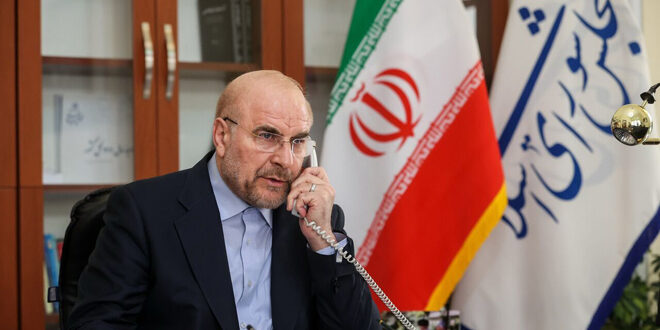 وخلال اتصال هاتفي مع نظيره اللبناني نبيه بري لمناقشة آخر التطورات الإقليمية جدد قاليباف دعم إيران لحكومة لبنان وبرلمانها وشعبها ومقاومتها وقراراتها.