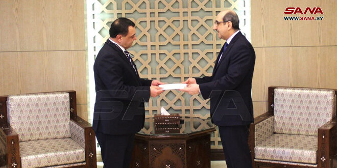 تسلّم وزير الخارجية والمغتربين بسام صباغ اليوم نسخة من أوراق اعتماد السفير روبين خارازيان سفيراً مفوضاً فوق العادة لجمهورية أرمينيا لدى الجمهورية العربية السورية.