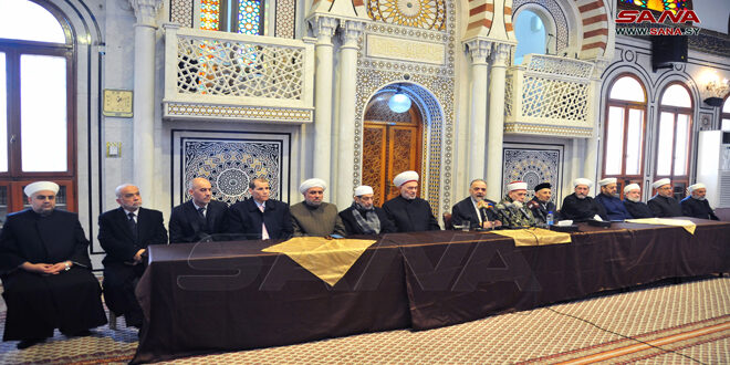دعا اتحاد علماء بلاد الشام وخطباء وأئمة المساجد في سورية علماء العالم الإسلامي والمؤسسات الدينية في الدول العربية والإسلامية لدعم سورية في مواجهة الإرهاب والتكفير وداعميه.
