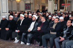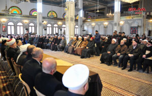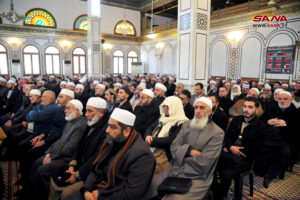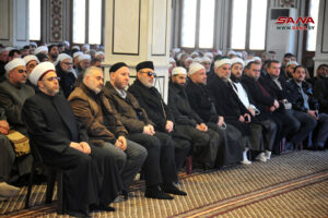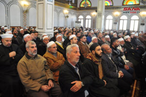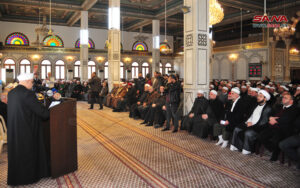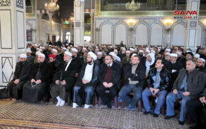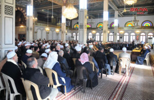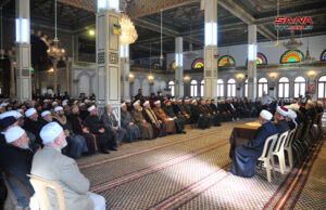 ووجه أئمة وخطباء المساجد تحية إجلال وإكبار مع خالص الدعاء لشهداء الجيش العربي السوري الذين سيّجوا بدمائهم الطاهرة حدود البلاد، ووحدوا بجراحهم آلام السوريين وآمالهم، وصاغوا ببطولاتهم أعظم معاني القوة والصلابة، مؤكدين الوقوف خلف جيشنا الباسل في مواجهة أعداء الله والأديان والأوطان من الإرهابيين التكفيريين في “جبهة النصرة” وسواها.