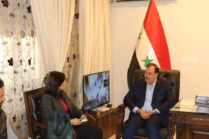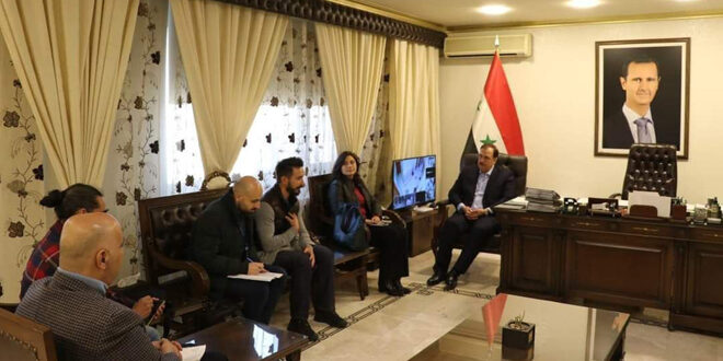 بحث محافظ ريف دمشق أحمد خليل مع وفد من برنامج الأغذية العالمي العامل في مكتب المنطقة الجنوبية بسورية خطط الاستجابة والبرامج التي ينفذها البرنامج في المحافظة.