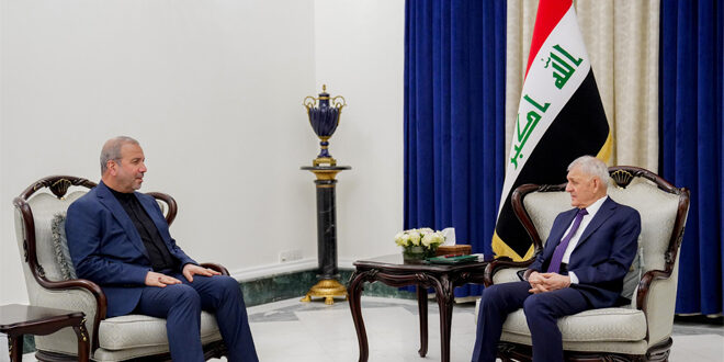 وذكرت الدائرة الإعلامية لرئاسة الجمهورية العراقية في بيان أن “الجانبين أكدا خلال لقائهما ضرورة تكثيف الجهود والتنسيق المشترك للوصول إلى حالة الأمن والاستقرار في المنطقة وحفظ وحدة وسيادة سورية وسلامة أبنائها”.