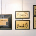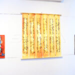 الخطاطة أماني مسكة شاركت بـ 4 لوحات حروفية حديثة بألوان قوية وخامات متعددة مع إدخال بعض الزخرفة النافرة في لوحة اعتمدت الخط الفارسي، إضافة للوحتي “توءم” أطلقت عليهما اسم “متناقضات” لتعطي ألوانهما تضاداً بصرياً بين الهدوء والصخب مع لوحة تشكلت حروفها باللون البرتقالي المشع.