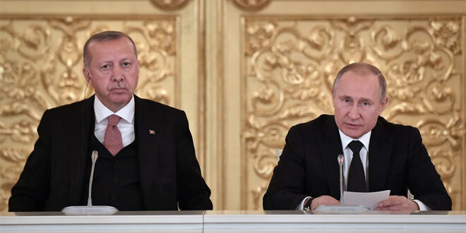 أكد الرئيس الروسي فلاديمير بوتين خلال اتصال هاتفي مع رئيس النظام التركي رجب طيب أردوغان ضرورة الوقف السريع للعدوان الإرهابي على الدولة السورية من قبل الجماعات المتطرفة.