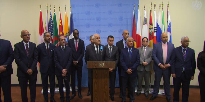 وأكدت المجموعة العربية ضرورة دعم جهود إعادة الأمن والاستقرار إلى جميع أنحاء سورية والحد من المعاناة وتكثيف الجهود لخفض التصعيد والعودة إلى الحل الدبلوماسي والسياسي الذي يحفظ للشعب السوري أمنه وازدهاره وتوفر الظروف الملائمة لعودة اللاجئين السوريين إلى وطنهم، كما شددت على أهمية تنفيذ قرارات مجلس الأمن ذات الصلة بمكافحة الإرهاب، ووجوب تركيز الجهود على تحقيق الحل السياسي بقيادة وملكية سورية ودون تدخل خارجي بما يحفظ لسورية سيادتها واستقلالها ووحدة وسلامة أراضيها وأمن مواطنيها.