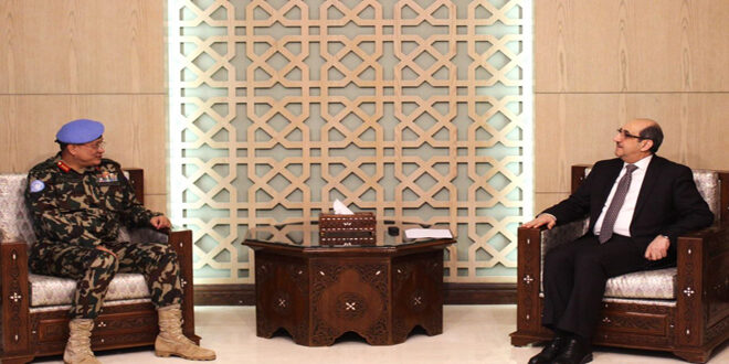 استقبل وزير الخارجية والمغتربين بسام صباغ، اليوم، اللواء نيرمال ثابا قائد قوة الأمم المتحدة لمراقبة فض الاشتباك العاملة في الجولان السوري المحتل UNDOF، في زيارة وداعية بمناسبة انتهاء مهمته في سورية.