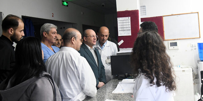 تفقد وزير الصحة الدكتور أحمد ضميرية واقع عمل مشفى دمشق (المجتهد) خلال جولة للاطلاع على واقع العمل الصحي وجهوزية المشافي.