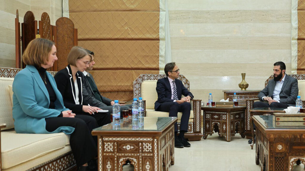 2024-12-18دمشق-ساناالتقى القائد أحمد الشرع مع وفد ممثل عن وزارة الخارجية الألمانية في العاصمة دمشق، وبحث الشرع مع الوفد التطورات الأخيرة في سوريا. القائد أحمد الشرع 2024-12-18seba