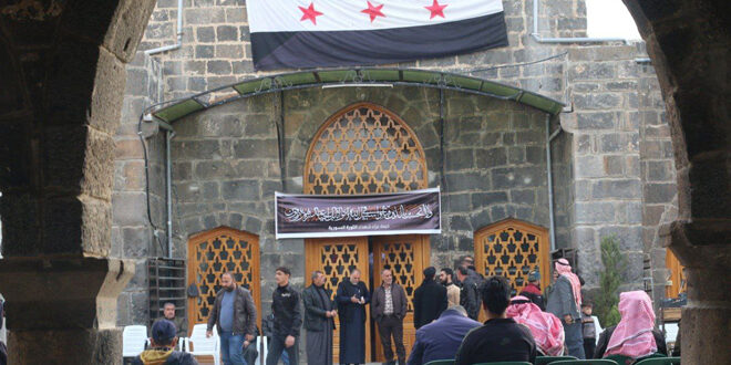 أقام أهالي درعا البلد يقيمون خيمة عزاء لشهداء الثورة السورية المباركة داخل المسجد العمري، تخليداً لذكراهم وتقديراً للتضحيات التي قدموها في سبيل انتصار الثورة على نظام الأسد المجرم.