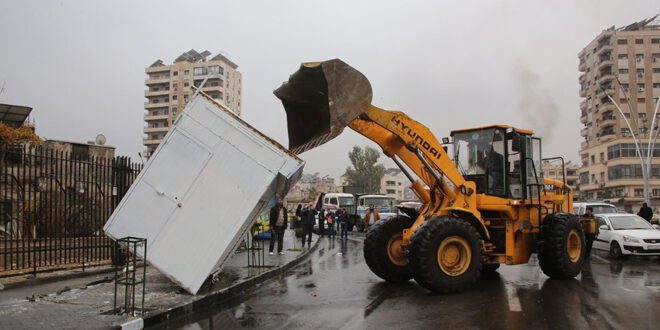 أزالت مديرية دوائر الخدمات في محافظة دمشق المخالفات التي تمت إشادتها على الأملاك العامة في منطقة المزة بعد تحرير المدينة من النظام البائد.