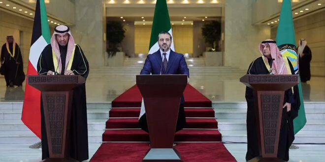 وقال الشيباني في مؤتمر صحفي مع نظيره الكويتي وأمين مجلس التعاون الخليجي: نرحب من سوريا السلام بالوفد العربي الذي ترأسه وزير خارجية الكويت وسيادة الأمين العام لمجلس التعاون الخليجي، ونشكر موقف دولة الكويت المشرف إلى جانب شعبنا خلال الأزمة السابقة.