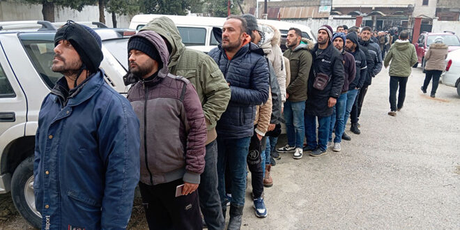 إقبال ملحوظ على مراكز التسوية لعناصر النظام البائد في جميع المحافظات… الصور من أمام مركز التسوية في مدينة مصياف بحماة