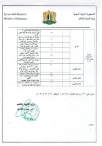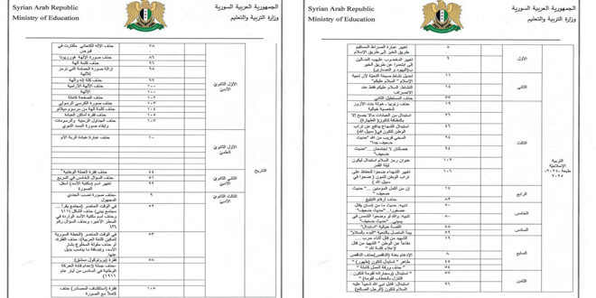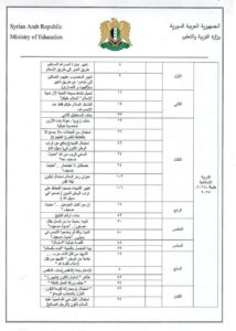 أجرت وزارة التربية والتعليم بعض تعديلات على المناهج الدراسية لمختلف المواد من الصف الأول وحتى الثالث الثانوي في سوريا للعام الدراسي 2025.