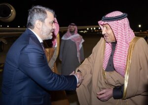وصل وزير الخارجية أسعد الشيباني ووزير الدفاع مرهف أبو قصرة ورئيس جهاز الاستخبارات أنس خطاب إلى مطار الملك خالد الدولي في العاصمة السعودية الرياض.