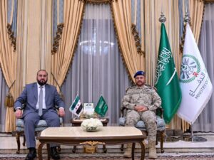 التقى وزير الدفاع اللواء المهندس مرهف أبو قصرة رئيس هيئة الأركان العامة الفريق الأول الركن فياض الرويلي في المملكة العربية السعودية ضمن زيارة الوفد الرسمي السوري إلى الرياض.