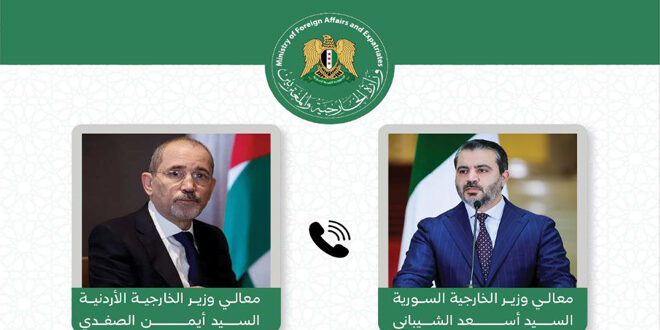 تلقّى وزير الخارجية والمغتربين أسعد الشيباني اتصالاً هاتفيّاً من وزير خارجية المملكة الأردنية الهاشمية أيمن الصفدي، حيث أكد الوزير الصفدي على دعم بلده للشعب السوري، وأبدى استعداد الأردن لتقديم أية مساعدات تصب في إطار تعزيز الأمن والاستقرار وإعادة الإعمار.