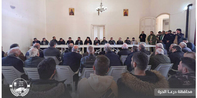 2025-01-06درعا-سانااجتمعت إدارة العمليات العسكرية والشؤون السياسية مع ممثلي الطائفة المسيحية في بلدة خبب في الريف الشمالي لمحافظة درعا. إدارة العمليات العسكرية والشؤون السياسية 2025-01-06malek